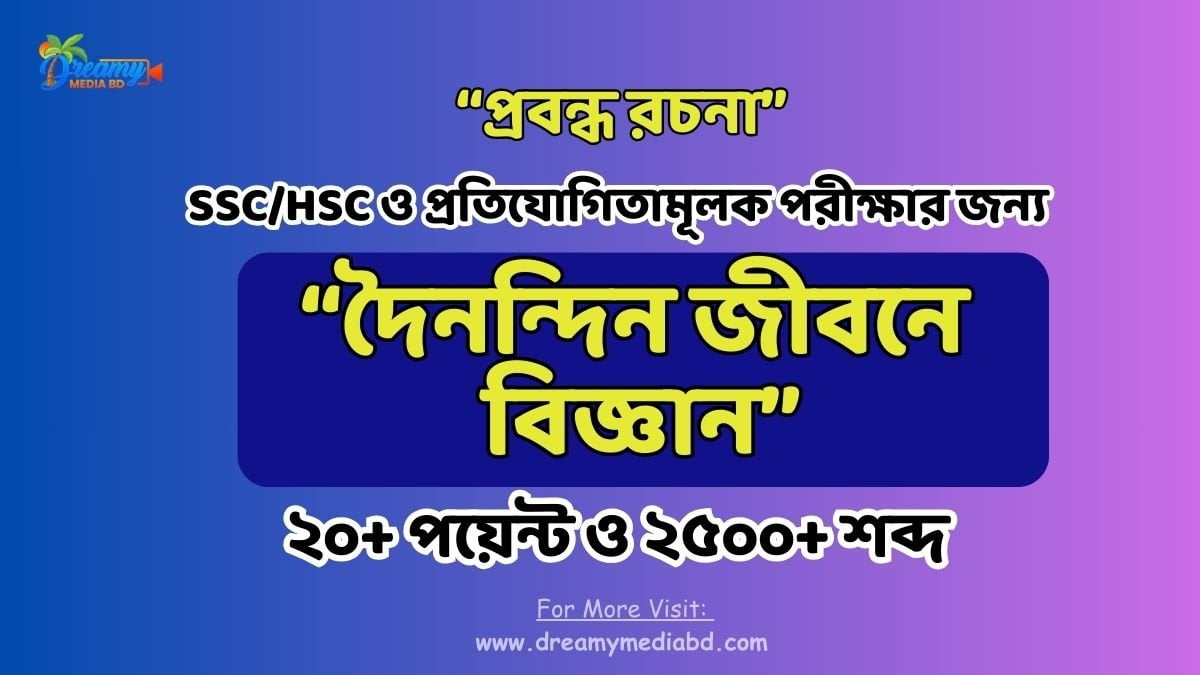 প্রিয় শিক্ষার্থী বন্ধুরা আজকে আমরা হাজির হয়েছি খুবই গুরু্বপূর্ণ একটা রচনা “দৈনন্দিন জীবনে বিজ্ঞান” নিয়ে। আমরা রচনাটি লিখেছি সর্বশেষ উদ্ভাবিত বিজ্ঞান প্রযুক্তি গুলি নিয়ে, যেমন: কৃত্রিম বুদ্ধিমত্তা বা এআই, চ্যাট জিপিটি, বিগ ডেটা যা অন্য কোঁথাও পাওয়া যাবে না। রচনাটি ২০+ পয়েন্টে ২৫০০+ শব্দে লেখা, যেন শিক্ষার্থীরা একবার পড়েই রচনাটি মাথায় রাখতে পারে।